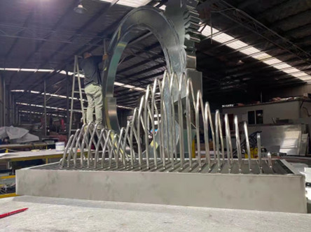 對外承接大型激光切割、鈑金折彎加工、噴涂、噴漆、噴塑、耐候鋼板景觀、各種欄桿生產制作安裝